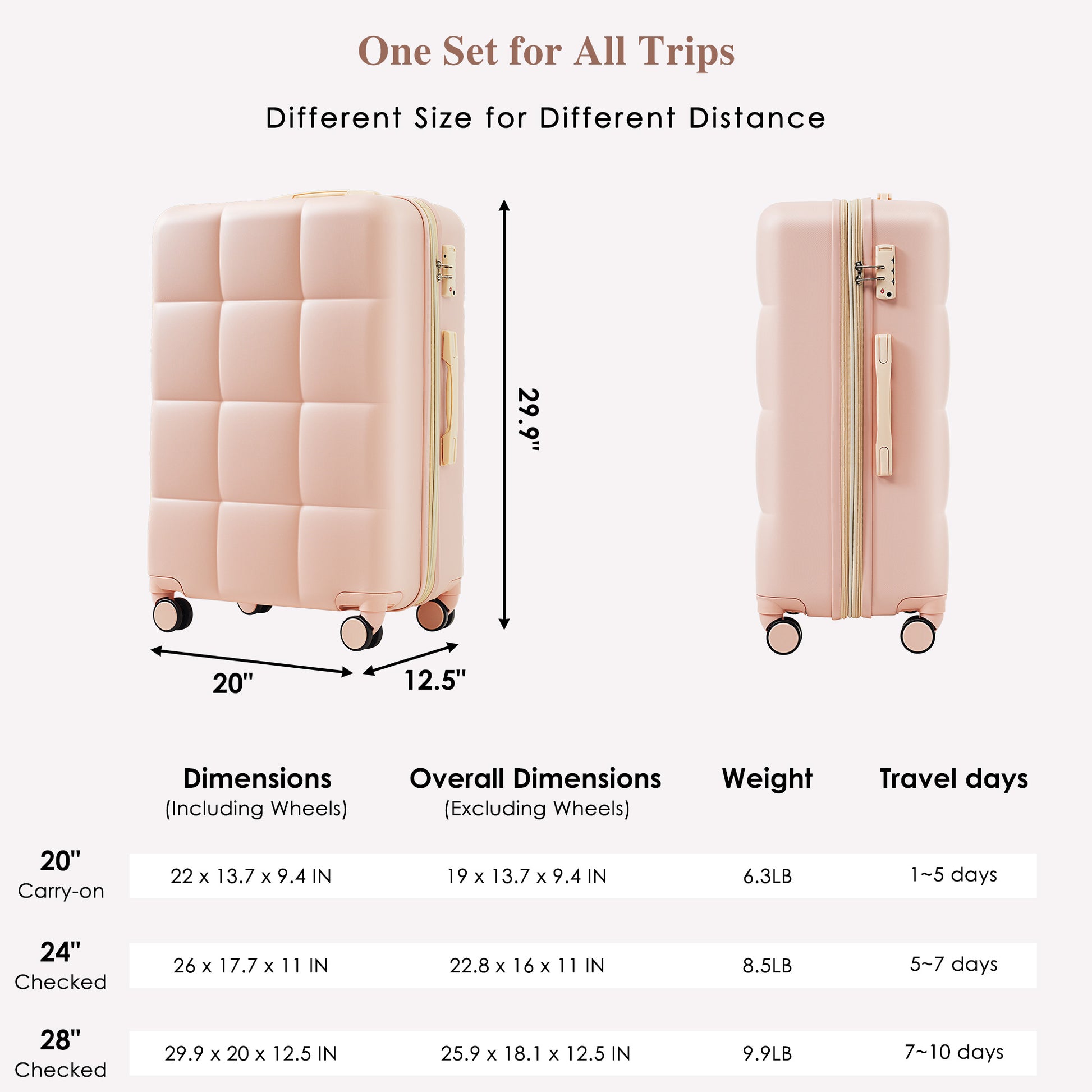Product Name:Luggage Set of 3, 20-inch with USB Port, Airline Certified Carry-on Luggage with Cup Holder, ABS Hard Shell Luggage with Spinner Wheels, pink