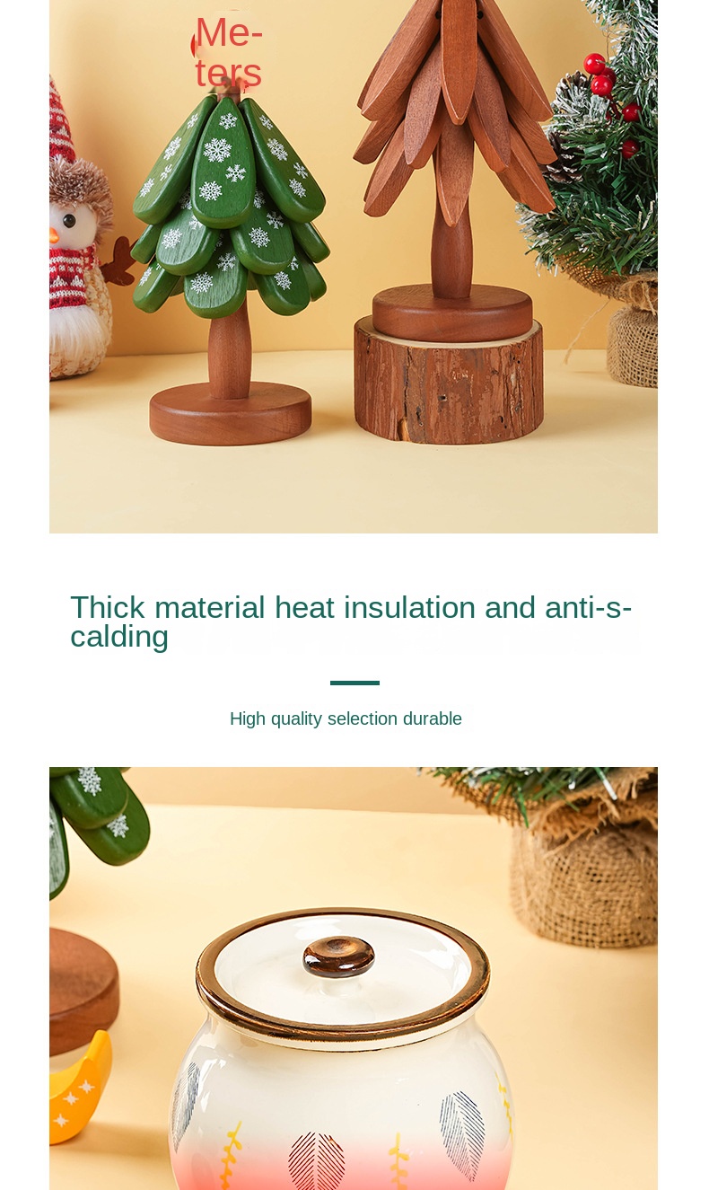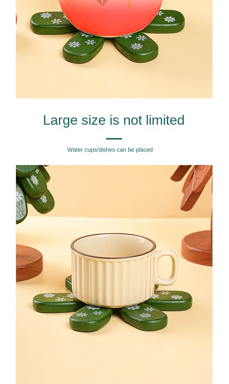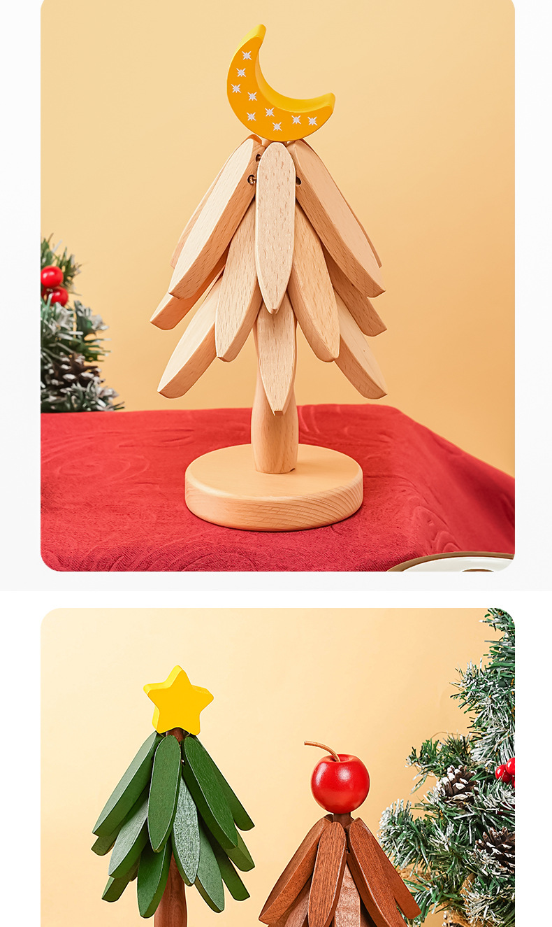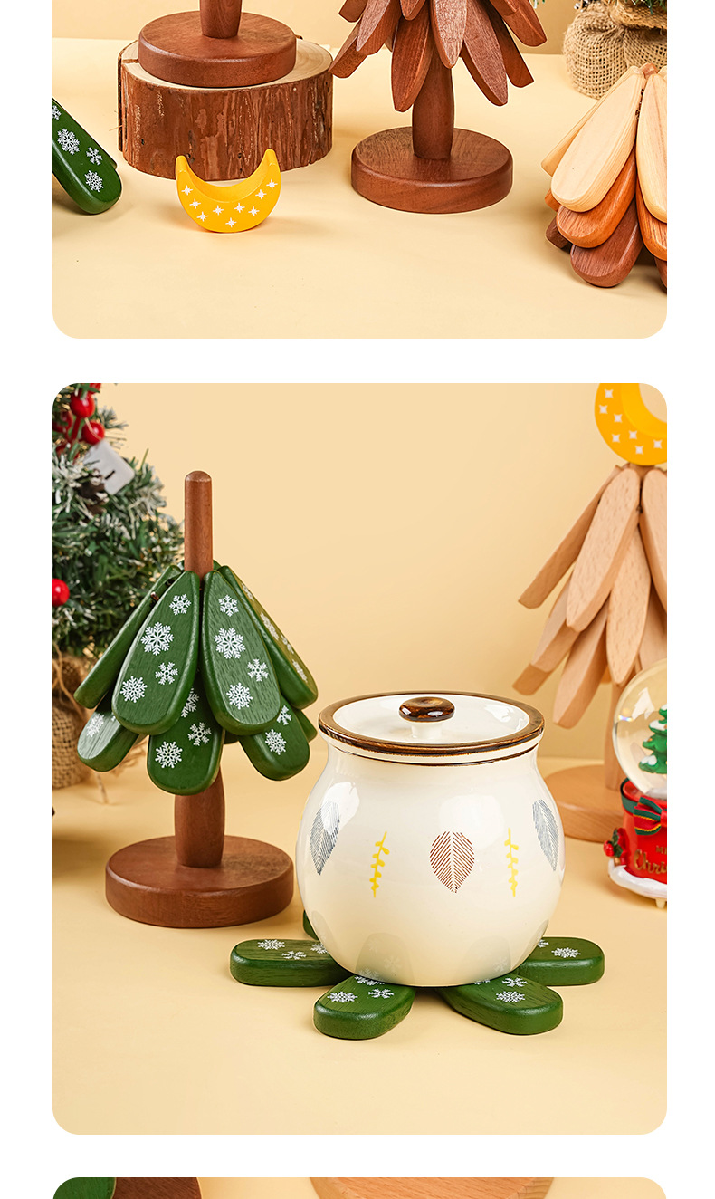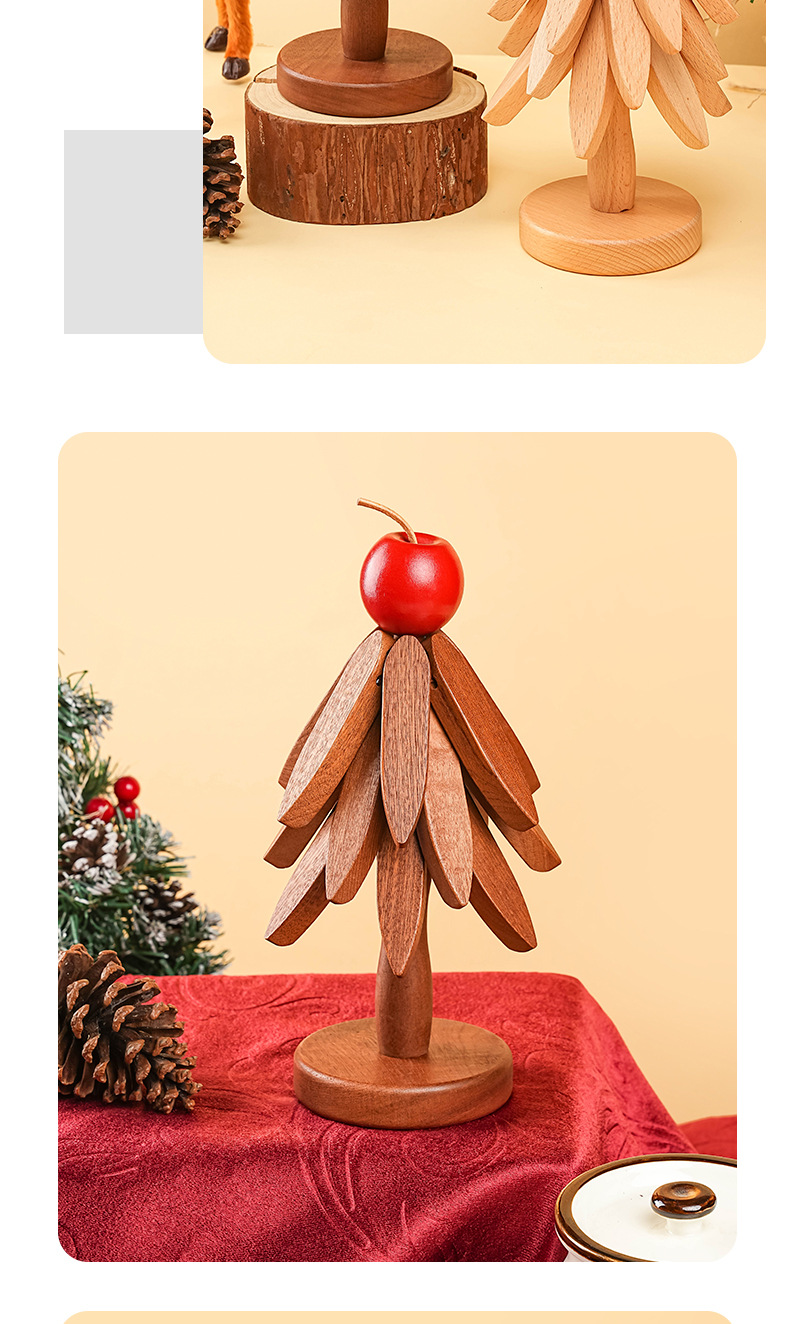 Solid Wood Tree-Shaped Drink Placemat - Unique Festive Table Trivet & Gift