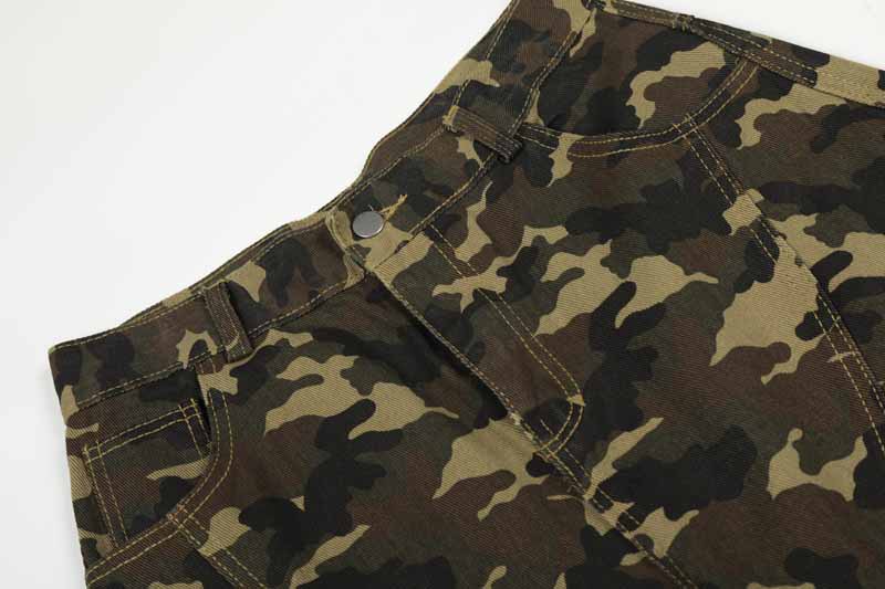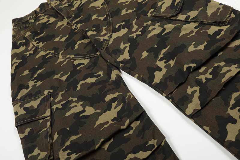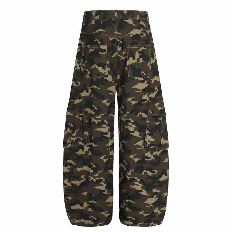 Unisex Camouflage Multi-Pocket Loose Straight Leg Cargo Pants